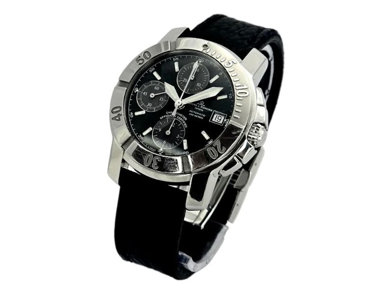 O Baume & Mercier Capeland Cronógrafo Ref. 65352 é uma peça que combina tradição relojoeira suíça com design robusto e funcionalidade esportiva. Com caixa de 39mm em aço inoxidável e pulseira em couro de tubarão preto, este modelo masculino oferece conforto, durabilidade e sofisticação.