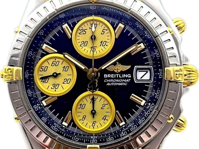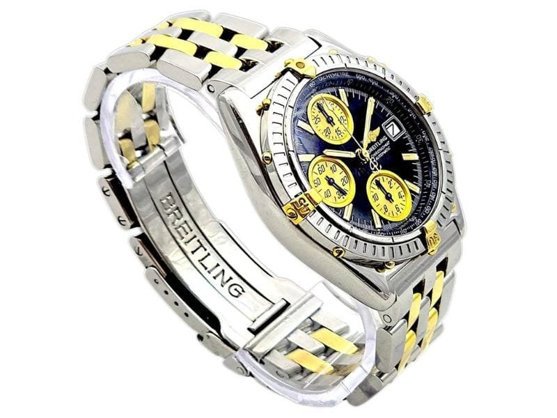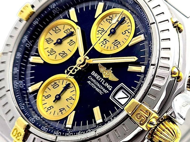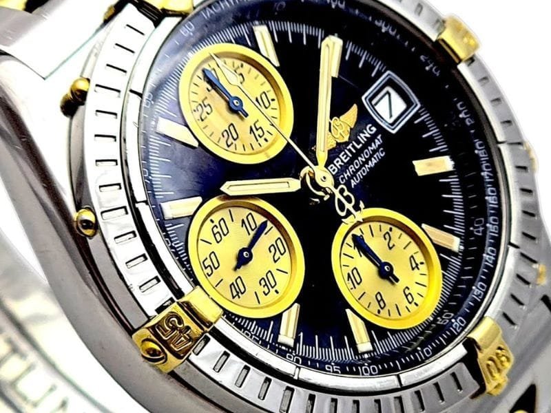 Um ícone da Breitling, o Chronomat GT combina força, precisão e elegância. Seu design bicolor em aço e ouro é imponente, enquanto o mostrador preto com subdials dourados oferece leitura clara e estilo esportivo refinado. Uma peça desejada por colecionadores e entusiastas da alta relojoaria.