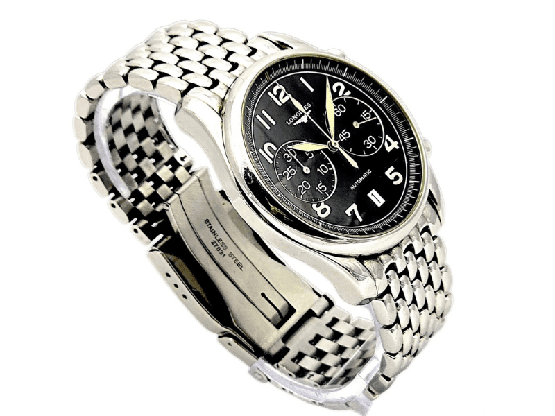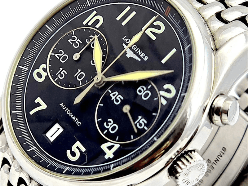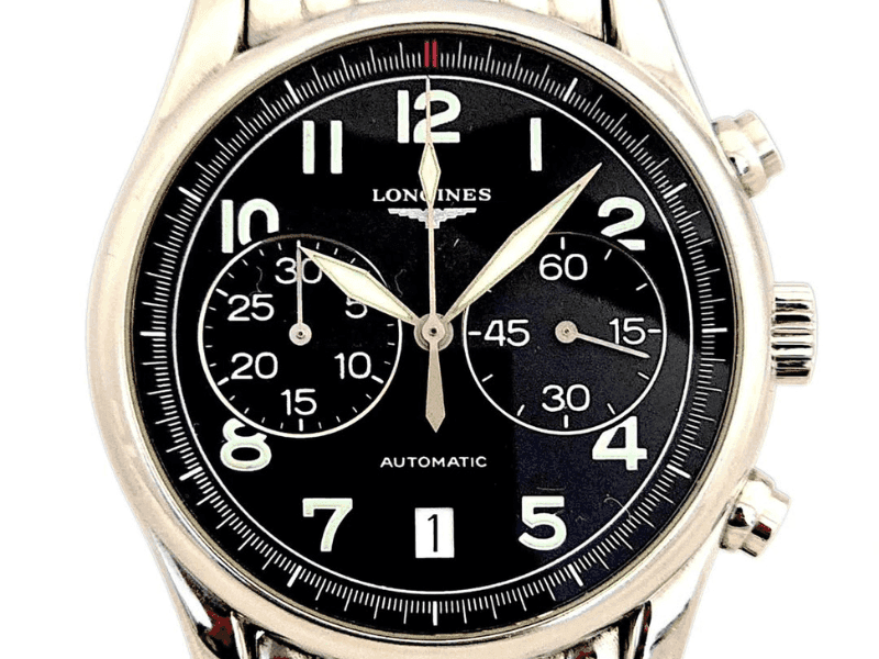Inspirado na herança da aviação, o Longines Avigation Special Series Ref. L2.620.4 combina engenharia de precisão e design clássico em uma peça que exala robustez e elegância. Com caixa de aço inoxidável de 40 mm e mostrador preto de alta legibilidade, seus algarismos arábicos luminosos garantem leitura perfeita em qualquer situação.