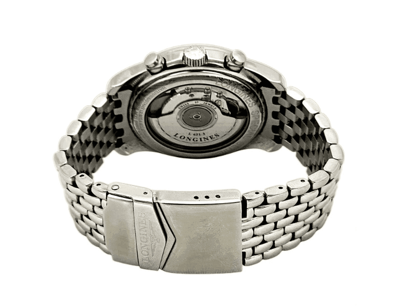 O cristal de safira resistente a arranhões protege o mostrador e mantém o brilho impecável ao longo dos anos. Seu movimento automático Longines Calibre L651.3 oferece precisão absoluta e funções essenciais: horas, minutos, cronógrafo e calendário na posição das 6 horas.