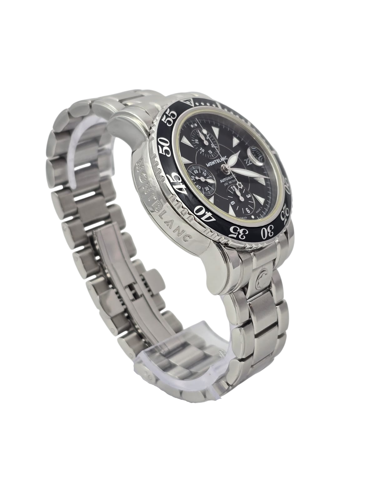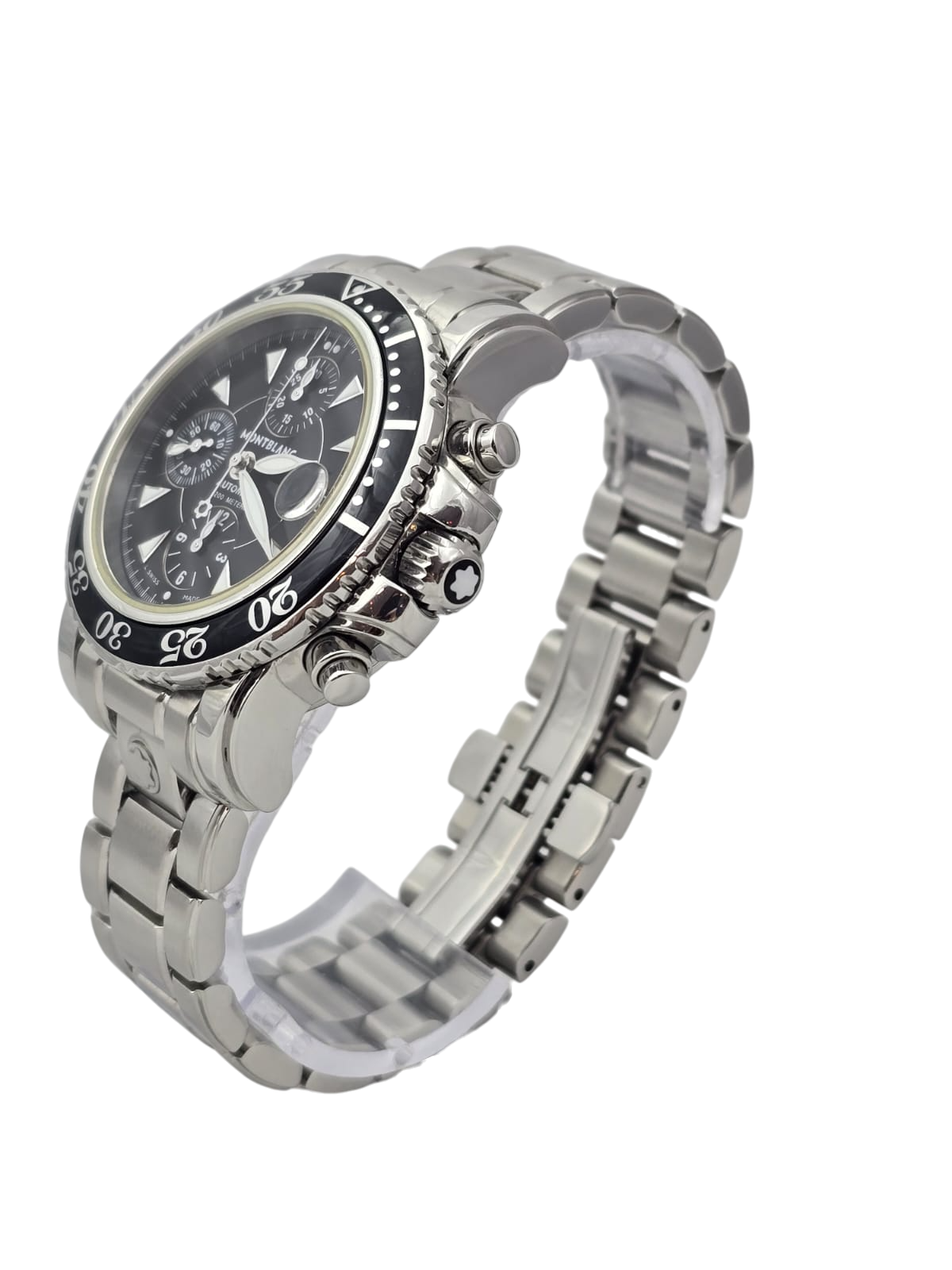 Montblanc Sport Chronograph Automatic – ref. 7034, um dos modelos mais sólidos e bem construídos da linha esportiva da marca. Relógio suíço com movimento automático, cronógrafo funcional e resistência à água de 200 metros, unindo esportividade e elegância na medida certa.