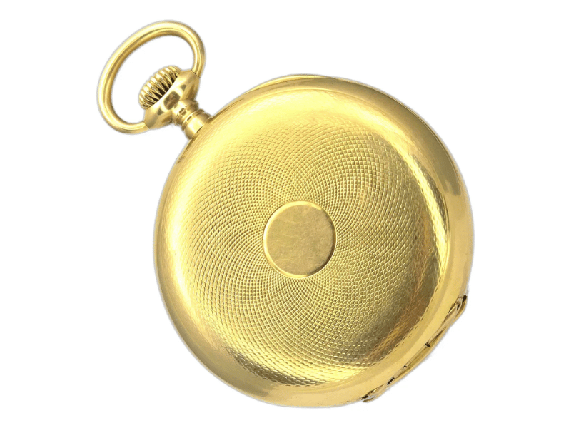 A caixa de 46mm em ouro amarelo 18k maciço exibe acabamento refinado e proporções clássicas. O mostrador em esmalte branco com algarismos romanos e subdial de segundos oferece uma leitura elegante e atemporal. Seu movimento mecânico de corda manual foi revisado por relojoeiros especializados e está em excelente estado de funcionamento.