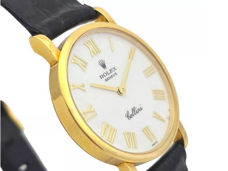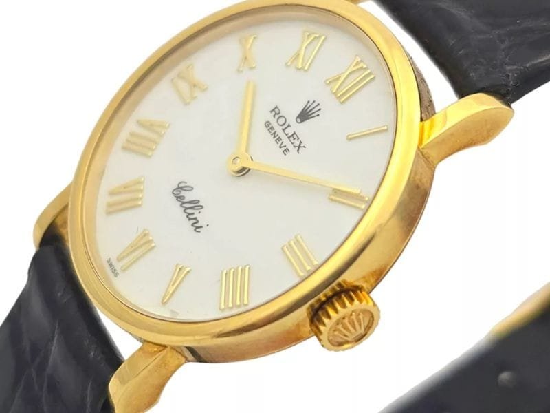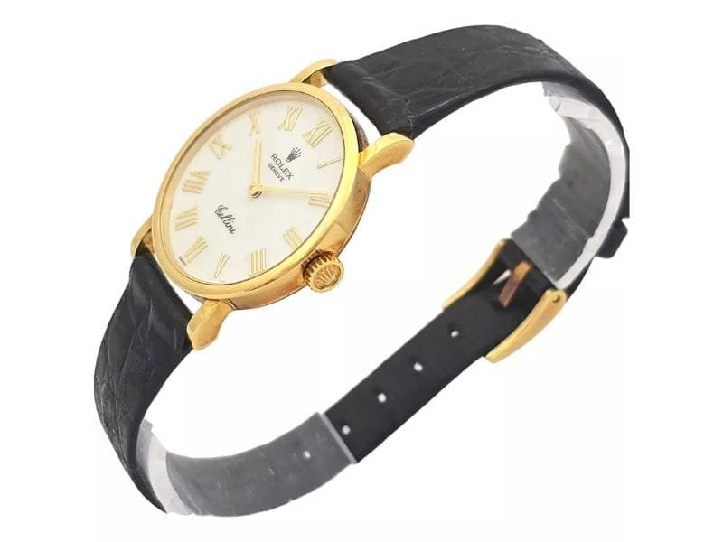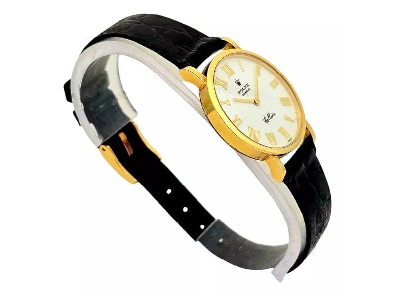 O Rolex Cellini Lady 5109 é um relógio feminino refinado, com caixa em ouro amarelo 18k, pulseira de couro legítimo e movimento de corda manual. Uma peça rara e sofisticada que homenageia a arte clássica da relojoaria.