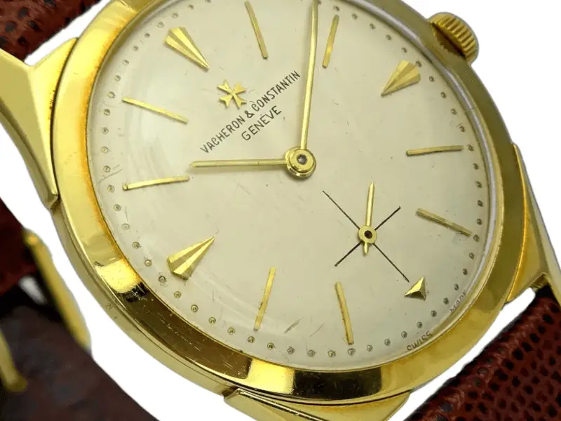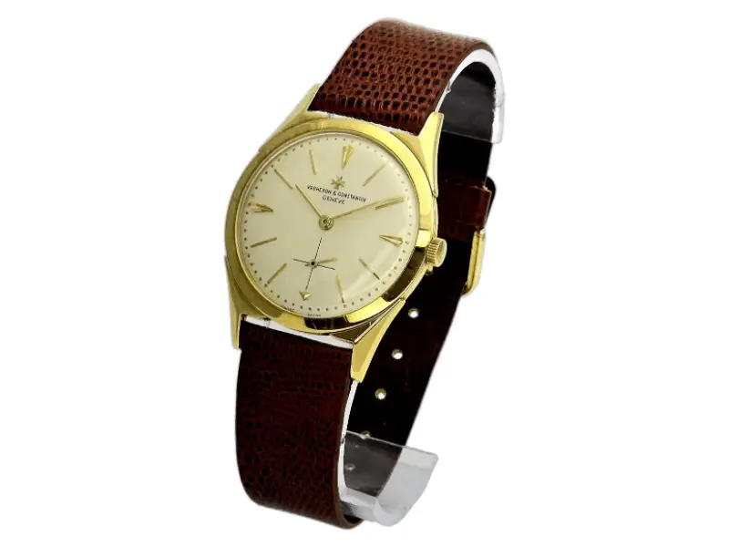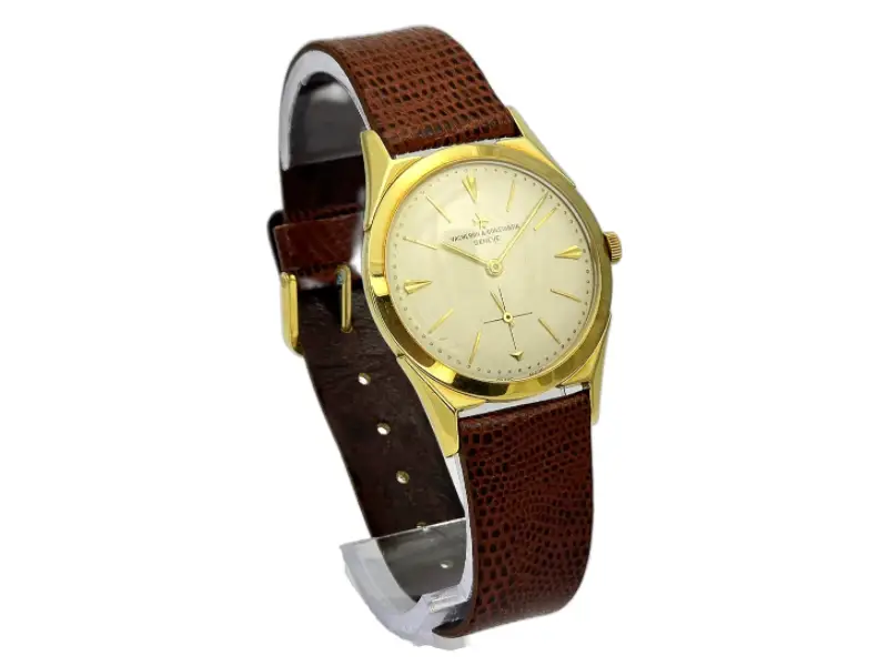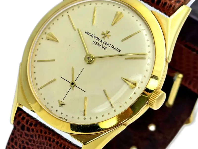 O Vacheron Constantin 6068 é um exemplar raro da alta relojoaria suíça, produzido em 1954. Sua caixa em ouro amarelo maciço 18k, com bisel e fundo no mesmo metal precioso, transmite luxo e sofisticação em cada detalhe.